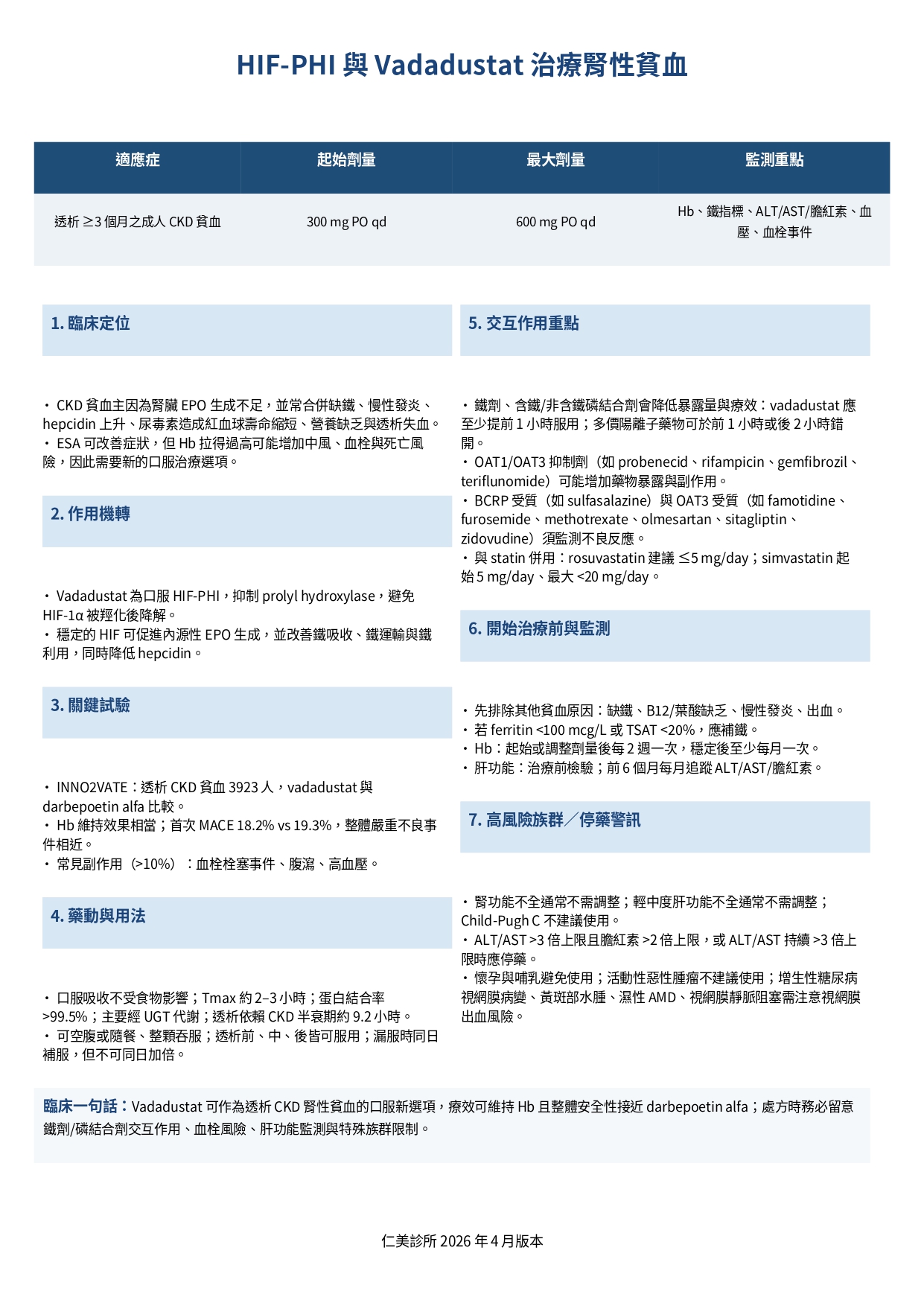 HIF-PHI 與 Vadadustat 治療腎性貧血